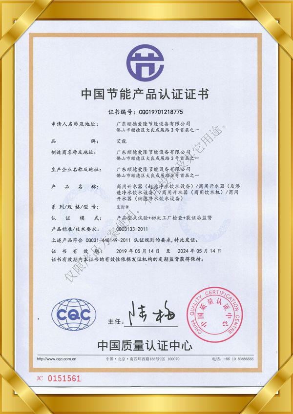 中國節能產品認證證書