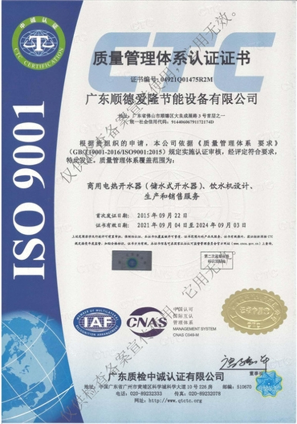 質量管理體系認證證書